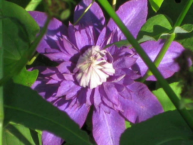 Kärhöt eivät ole tänä kesänä olleet parhaimmillaan. Tämäkin "Multi Blue" on tehnyt vain tämän yhden kukan. Tosin se on ehkä liikaa varjossa omenapuun alla.